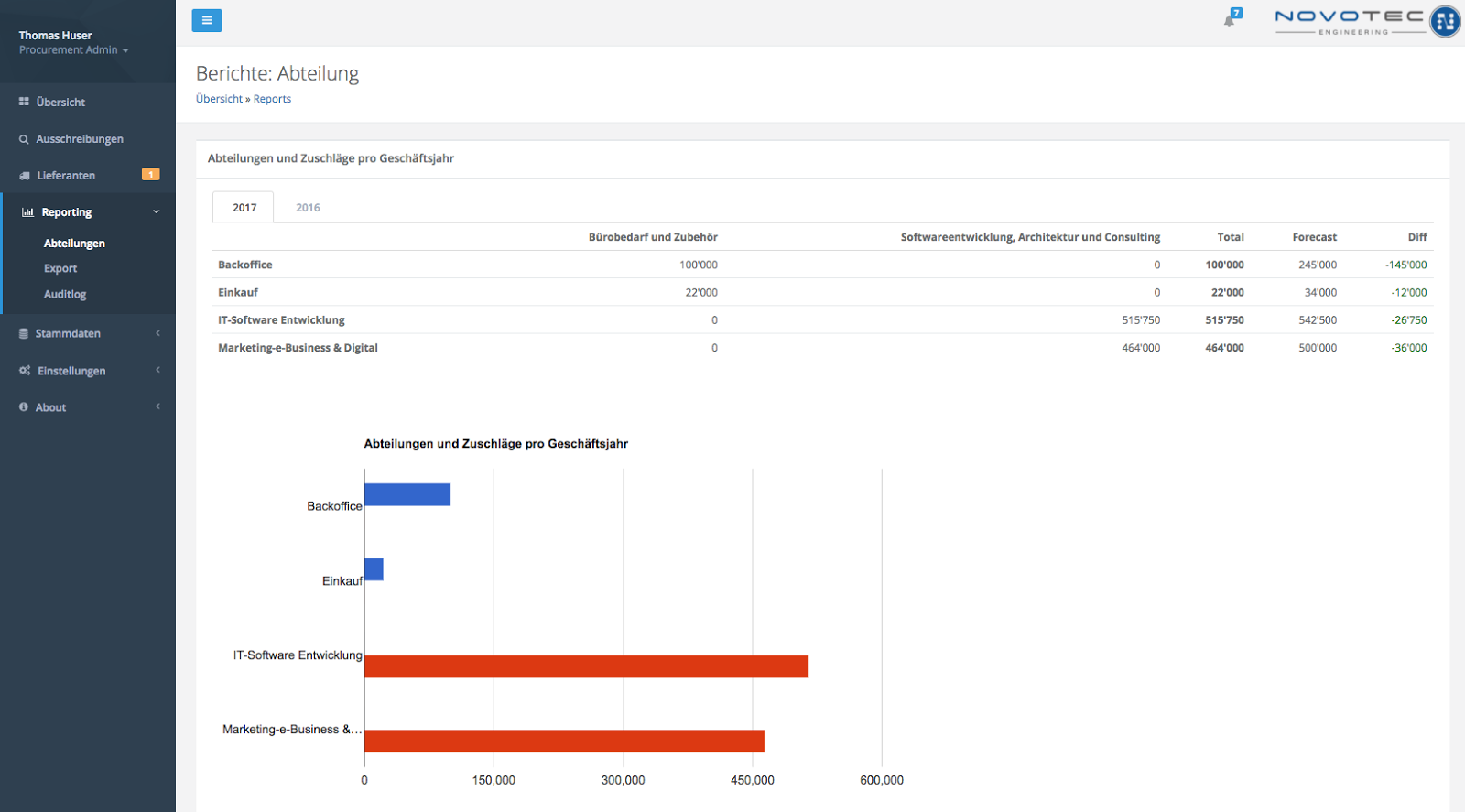 - Prozess- & Einkaufsvolumen-Reports je Fachbereich