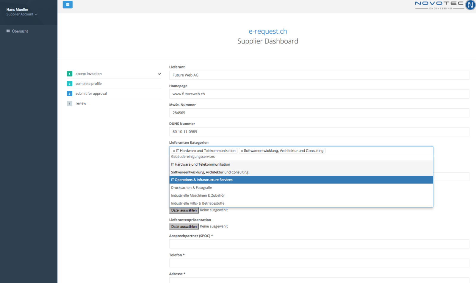 - Lieferant vervollständigt selbstständig seine Stammdaten